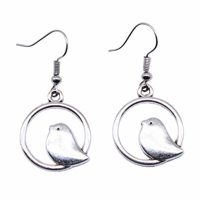 Vintage Bird Charm Drop Earrings – Handmade Boho Jewelry